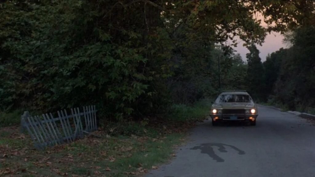 In Friday the 13th: The Final Chapter (1984) you can see the Car AC condensation pooled up from previous shoots. This is just before the hitchhiker scene – Movie Mistakes
