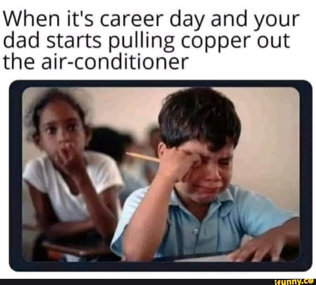 When it’s career day and your dad… img.ifunny.co 1 dada dudu 11 months ago in memes 0 When it’s career day and your dad starts pulling copper out the air-conditioner Facebook Twitter Pinterest votersdada duduReport Story Related Stories Women feel weak around men they are attracted to Every Monday! What is that money good for anyway? Educating the youth of today From ‘The Jetsons’ dreams to modern memes He can’t think nebinioners hear me out… Care for a pint, mate? Does that mean my body can run Doom? Pizza Getting Delivered To…McDonald’s Tags : aircareercrydaddadmemefunnyfunny memeshahamemememesdailywtf